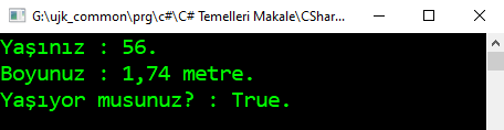 Böylece ilk programımızı yaptık ve en temel konsol uygulaması komutlarından birini öğrendik. Devam edelim.
